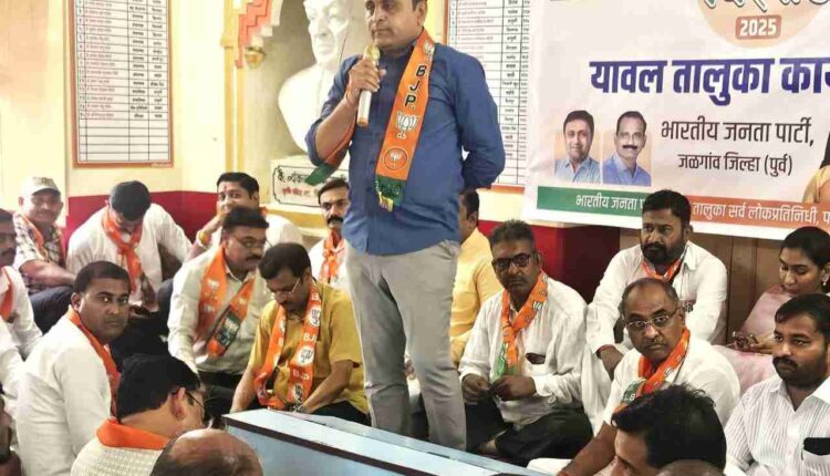 देशाचे पंतप्रधान नरेन्द्र मोदी यांच्या १७ सप्टेंबर रोजी साजरा होणाऱ्या जन्मदिना निमित्ताने २ ऑक्टोबर या महात्मा गांधी यांची जयंती या कालावधीत देशभरात साजरा होणारा सेवा पंधरवाडा कार्यक्रमाच्या निमित्ताने यावल येथे आमदार अमोल जावळे यांच्या उपास्थित पदाधिकारी व कार्यकर्त्यांची कार्यशाळा उत्साहाच्या वातावरणात संपन्न झाला.