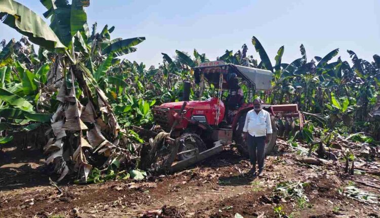 चुंचाळे येथील एका संतप्त शेतकऱ्यांने फिरवले उभ्या केळीवर ट्रक्टर !! केळी कवडीमोल विक्रीवरून हवालदिल शेतकऱ्याचे टोकाचे पाऊल !!