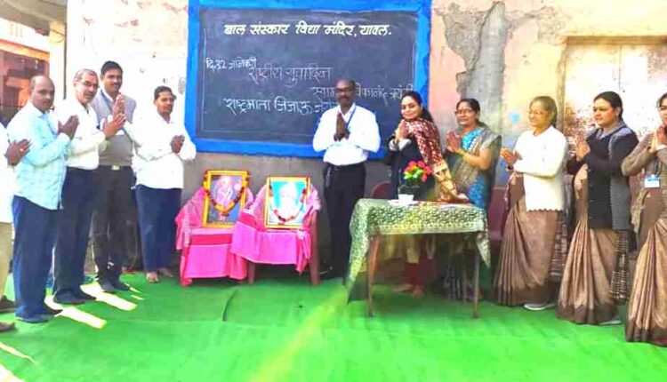 येथील बाल संस्कार विद्या मंदिर येथे राजमाता जिजाऊ आणि स्वामी विवेकानंद यांच्या जयंती निमित्ताने वक्तृत्व स्पर्धेचे आयोजन करण्यात आले.याप्रसंगी कार्यक्रमाचे प्रमुख पाहुणे म्हणून बाल संस्कार विद्या मंदिर शाळेतील माजी विद्यार्थिनी डॉ.ललिता नेरकर तसेच कार्यक्रमाचे अध्यक्ष मुख्याध्यापक सुनिल माळी यांनी प्रतिमा पूजन केले.