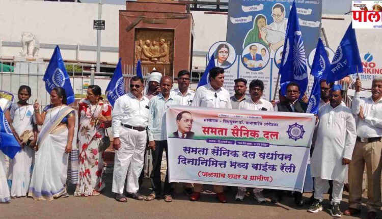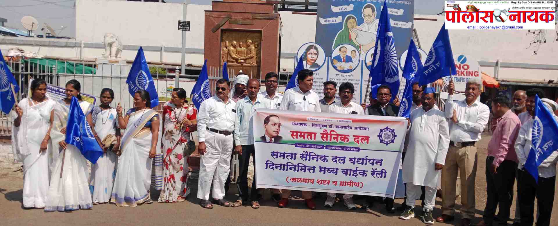 दरम्यान काल दि.१३ मार्च शुक्रवार रोजी समता सैनिक दल संघटनेला शंभर वर्षे पूर्ण झाली या अनुषंगाने जळगाव शहर व ग्रामीण शाखेच्या वतीने समता सैनिक दलाच्या वतीने समता सैनिक दलाचे राज्य संघटक विजय निकम यांच्या नेतृत्वाखाली या रॅलीचे आयोजन करण्यात आले.प्रसंगी महामानव डॉ बाबासाहेब आंबेडकर यांच्या पुतळ्याला विजय निकम यांच्या हस्ते माल्याअर्पण करून रॅलीची सुरुवात रेल्वे स्टेशन येथून करण्यात आली.सदर रॅली नेहरू चौक,टॉवर चौक,चित्रा चौक मार्गे गोलानी मार्केट तेथून छत्रपती शिवाजी महाराजांच्या स्मारकासमोरून नवीन बस स्टॅन्ड,स्वातंत्र्य चौक,आकाशवाणी चौक सर्कल,रिंग रोड,बहिणाबाई चौक मार्ग,गोकुळ स्वीट मार्ट समोरून सहस्रबुद्धे हॉस्पिटल यांच्या जवळून शाहू महाराज हॉस्पिटल मार्गे कोर्टासमोरून गोविंदा रिक्षा स्टॉप,नेहरू चौक पुन्हा रेल्वे स्टेशन जळगाव येथे रॅलीचा समारोप करण्यात आले.या रॅलीत जिल्हा मुख्य संघटक चैतन नन्नवरे,जिल्हा संघटक राजेश गवई,महानगराध्यक्ष मुकुंदराव भालेराव,पूर्व जिल्हा संघटक सुपडू संदानशिव,महानगर सचिव संजय सपकाळे,संघटक अनिता कापुरे,प्रतिभा घोडेस्वार,निलेश बाविस्कर,विनोद निकम,एकनाथ सोनवणे,कवी वसंत सपकाळे,गौतम सोनवणे,रमेश उमाळे,भैय्यासाहेब निकम,सुधीर शेंगदाणे,श्रीकांत शिरसाट,संतोष बागुल,सोमा अहिरे,राजु वानखेडे,किरण तायडे यांच्या सह सर्व कार्यकर्ते,सैनिक या रॅलीस मोठ्या संख्येने सहभागी झाले होते.