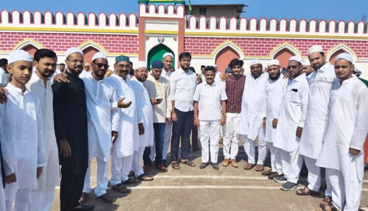 येथील ईदगाह मैदानावर मुस्लीम समाज बांधवांच्या संपुर्ण महिनाभरच्या उपवास (रोजे) समाप्तीनंतर आज दि.२१ मार्च रोजी सकाळी ९ वाजता मौलाना शमीउल्ला अब्दुल कादरी यांच्या मार्गदर्शनाखाली शेकडो मुस्लीम बांधवांनी सामुहिक नमाजचे पठन केले.जगातील सर्व मुस्लीम बांधवांचा रमजान ईद (ईद उल फित्र) हा पवित्र रमजान महिन्या समाप्ती नंतर येणारा आनंदा व बांधुभावाचा सण असुन महीनाभर उपवास (रोजे) केल्यानंतर चंद्रदर्शनानंतर हा सण साजरा करण्यात येतो.