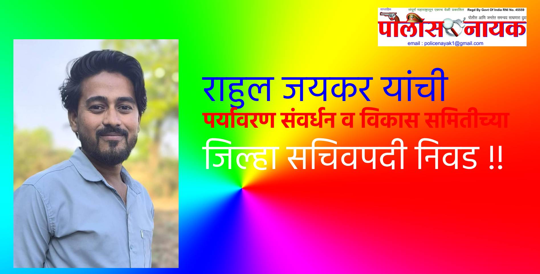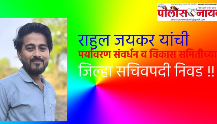 पर्यावरण संवर्धन व विकास समितीचे अध्यक्ष तथा पत्रकार डी.के.आरिकर यांच्या आदेशाने तसेच उत्तर महाराष्ट्र अध्यक्ष सुखदेव भालेराव (पत्रकार),उत्तर महाराष्ट्र सचिव व भूगोल अभ्यासक व संशोधक प्रा.योगेश गोसावी तसेच जळगाव जिल्हाध्यक्ष देवेंद्र वराडे (अप्पा) यांच्या मार्गदर्शनाखाली सामाजिक कार्यकर्ते राहुल जयकर यांची पर्यावरण संवर्धन व विकास समितीच्या जळगाव जिल्हा सचिवपदी नुकतीच निवड करण्यात आली आहे.