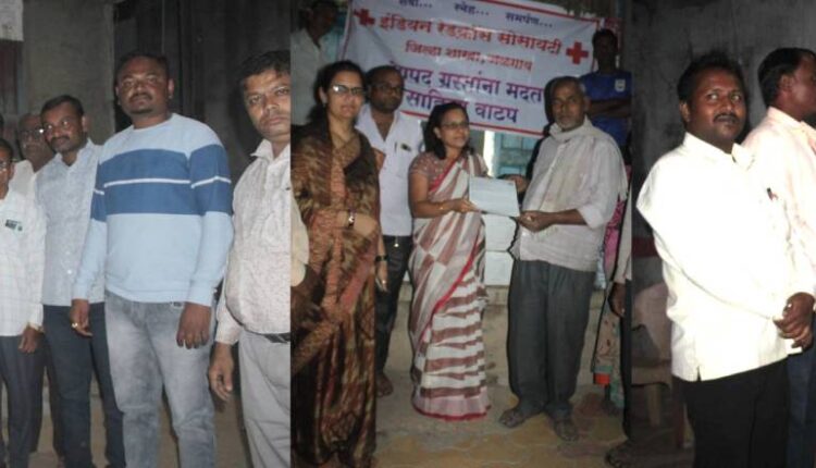 प्रसंगी इंडियन रेडक्रॉस सोसायटी जिल्हा शाखेच्या वतीने मदतीचा हात म्हणून अनिल सरोदे व दगडू पाटील या कुटुंबियांना देण्यात आलेल्या संसार उपयोगी कीटबाबत गावकऱ्यांच्या वतीने कौतुक करण्यात आले.”एकमेका सहाय्य करू अवघे धरू सुपंथ” या उक्ती नुसार तसेच इंडियन रेडक्रॉस सोसायटी अध्यक्ष जिल्हाधिकारी आयुष प्रसाद यांच्या कार्यकुशल मार्गदर्शनाखाली आमच्या इंडियन रेडक्रॉस सोसायटी जिल्हा शाखेच्या वतीने आपदग्रस्त कुटुंबियांना मदत करून आम्हीही या योगदानात खारीचा वाट उचलला असल्याची भावना इंडियन रेडक्रॉस सोसायटी पी आर ओ उज्ज्वला वर्मा यांनी यावेळी बोलतांना व्यक्त केली.यावेळी इंडियन रेडक्रॉस सोसायटी पी आर ओ उज्ज्वला वर्मा यांच्यासह उपाध्यक्ष गाणी मेमन,चेअरमन विनोद बियाणी,रक्त केंद्र चेअरमन प्रसन्नकुमार रेदासनी,आपत्ती व्यवस्थापन चेअरमन सुभाष साकला,ऑफिस अससिस्टन्ट मनोज वाणी,सरपंच नवाज तडवी,उपसरपंच धनराज पाटील,पोलीस पाटील राजरत्न आढाळे,तलाठी वसीम तडवी,ग्रामपंचायत सदस्य दिलीप तायडे,कोतवाल विजय आढाळे,ग्रामस्थ भोजराज पाटील,गंगाधर जावळे,योगेश ठोंबरे,दत्तू गुरव,रवींद्र पाटील,संजय आढाळे,दुलचंद पाटील,गणेश जावळे,ललित पाटील यांच्यासह ग्रामस्थ बहुसंख्येने उपस्थित होते.